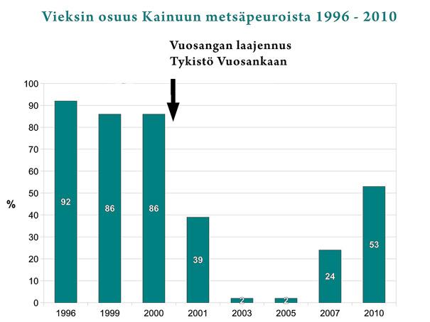 Kainuussa päälaidunalueet sijaitsivat Ristijärvellä Hiisijärvellä, Kuhmossa Vuosangan ampuma-alueella ja Sotkamossa Huhtikankaan alueella. Edellisessä laskennassa vuonna 2010 kannan koko oli 811 yksilöä.